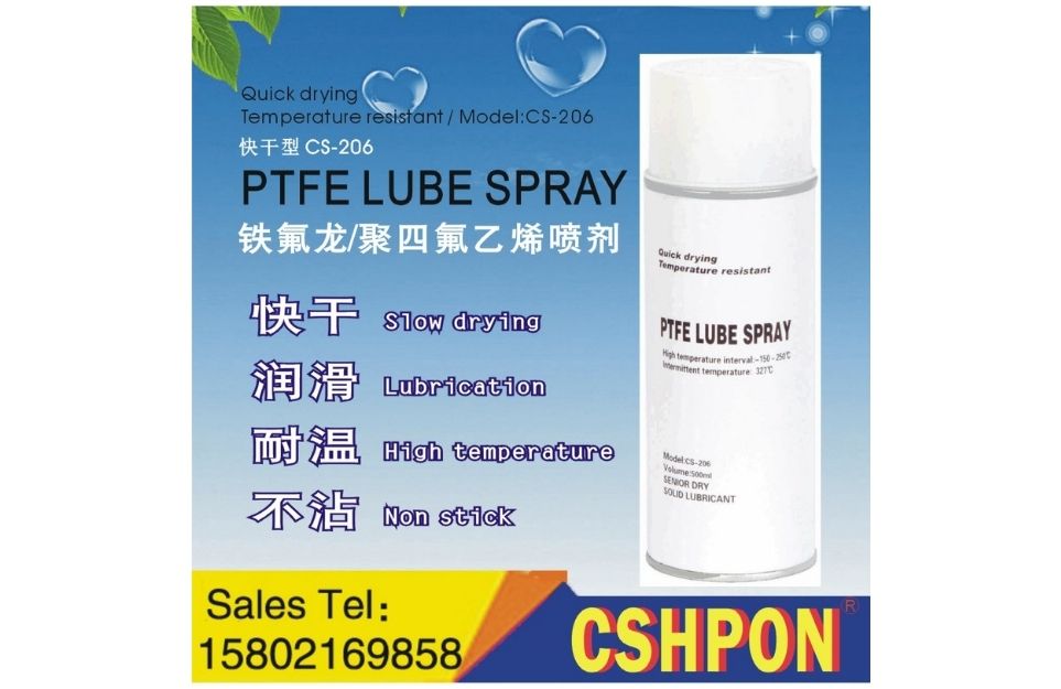 Teflon PTFE release agent (CS-206) is composed of ultra-fine polytetrafluoroethylene powder, highly viscous sol, dispersants, emulsifiers and propellants, through the process of mixing by high-pressurized aerosol filling. The product provides good film-forming property, nonstick, lubricity and wear resistance. It also has strong resistance in extreme pressure and high temperature. The product can be widely used in machinery, shipbuilding, steel, textiles, forging, metal and other industries as release agent. It can also be used as an open environment high-temperature resistant lubricant.